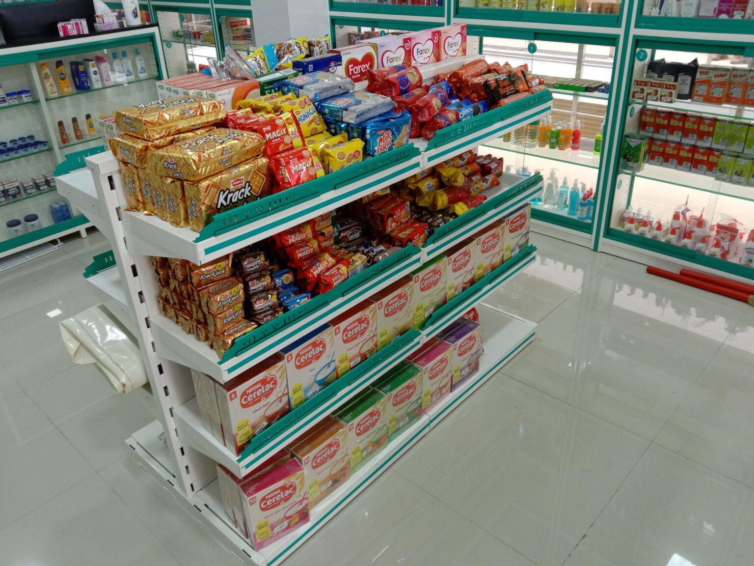We manufactures best quality furniture for supermarket stores includes various types of wall Racks with panel and net, Center racks, counter tables, cupboard, Revolving unit etc.